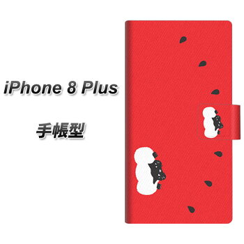 iPhone8 PLUS 手帳型スマホケース【IA812 すいかをかじるネコ】(アイフォン8 プラス/IPHONE8PULS/スマホケース/手帳式)